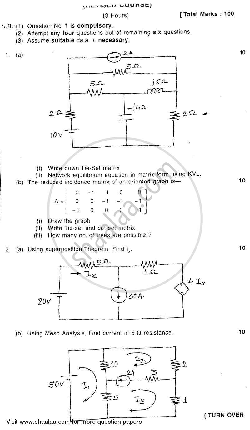 Circuit Analysis (A.C. and D.C.) Kirchhoff's law, Loop variable analysis, Node variable analysis, Source transformations, Reference directions for current and voltage, Active element conventions, Dot convention for coupled circuits, Linearity, Superposition, Thevenin's and Norton's, Maximum power for a.c. source and dependent source. Linear Graphs Introductory definitions, The incidence matrix A, The loop matrix B, Relationship between submatrix of A and B. Cut-sets and cut-set matrix, Fundamental cut-sets and fundamental tie-sets, Planar graphs, A and B matrices, Loop, Node, Node pair equations, Duality. Laplace Transforms Properties of Laplace transforms, Basic theorems, Laplace transform of gate function, Impulse function and periodic functions, Convolution integral, Inverse Laplace transform, Application of Laplace transforms to solution of network problems. Transient and Frequency Analysis Transient response of R-L, R-C, R-L-C circuits (series combinations only) for d.c. and sinusoidal excitations - Initial conditions, Solution using differential equation approach and Laplace transform methods of solutions, Transfer function, Concept of poles and zeros, Concept of frequency response of a system. Two Port Networks Concept of two port networks, Driving point and transfer functions, Open circuit and short circuit parameters, Transmission and inverse transmission parameters, Hybrid parameters, Inter-relationship of different parameters, Interconnection of two port networks, T and pi representation, Terminated two port networks. Fundamentals of Network Synthesis Realizability concept, Hurwitz property, Positive realness, Properties of positive real functions, Testing positive real functions, Synthesis of R-L, R-C and L-C driving point functions - Foster and Cauer forms.